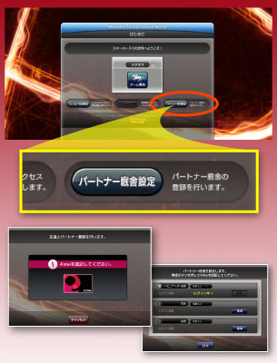 ログイン画面の 「パートナー廐舎設定ボタン」から、 新しいパートナー廐舎を登録することができます。