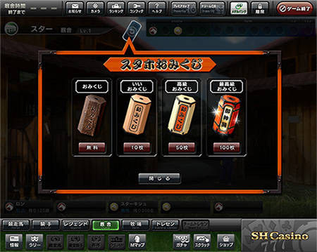 ・10ベットごと:1SH(1レースでの上限:10,000SH)