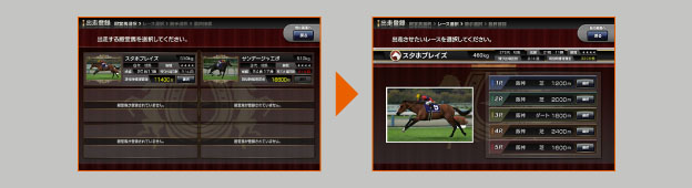 ② 今回開催される5つのレースのうちどれに出走させるかを選択してください。