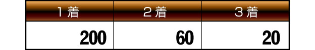 賞金(枚) (レースごとに、3着以内に入った殿堂馬の所有者に支払われます。)