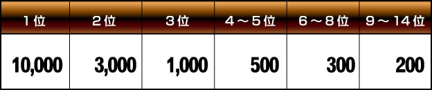 下表は、1,000チーム以上が参加した場合の賞金(メダル)です。