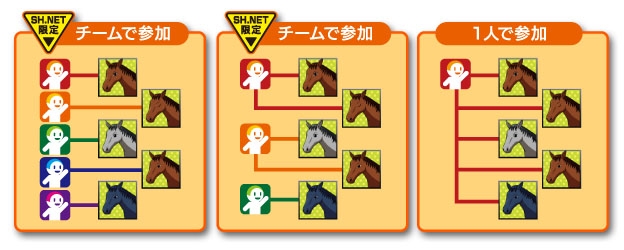 もちろんチームに所属せず、1人で5頭をそろえて参加することも可能です。